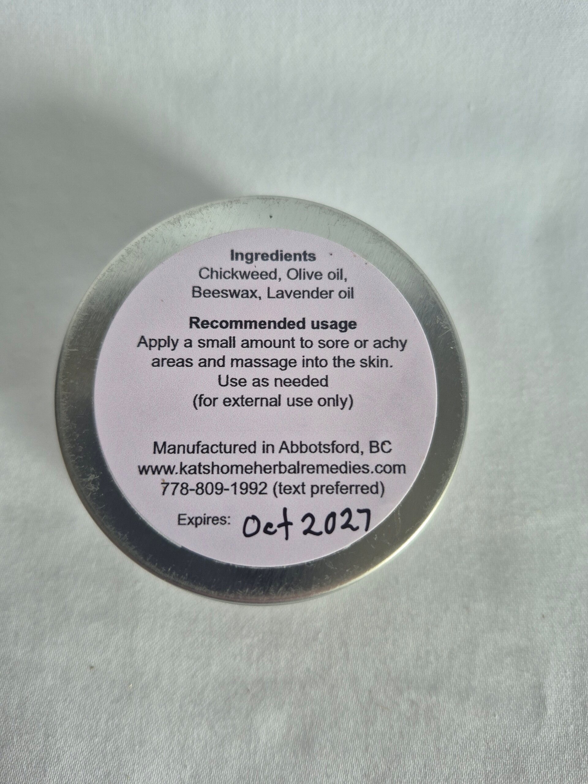 Dried Chickweed, Olive oil, Beeswax, Lavender oil